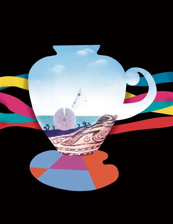 清华大学美术学院教授、杰出的工艺设计师、时任中央工艺美术学院神笔形象设计中心总监姚建伟专门为会议作了招贴画。画以新石器时代的彩陶为主体,调色板置于其下,彩陶艺术的水纹装饰与写实海水拼接对比,映出蓝天的白云下,五彩飘带穿越彩陶飘逸,意味着艺术与科学和人类文明的密切关系。政道先生看后,十分满意,即为画题名“人类文明的两个翅膀”。