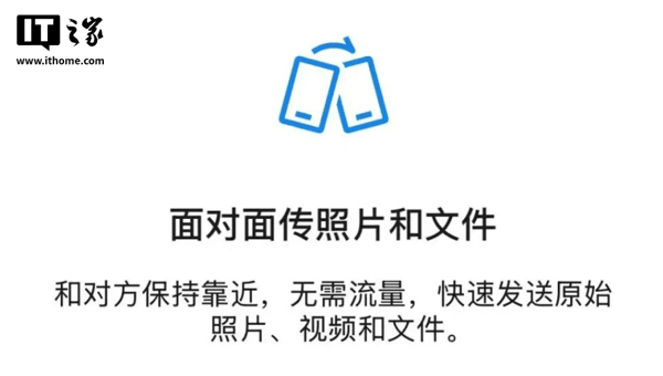 “面对面收照片和文件”是通过扫码与附近好友互传照片、视频和文件,不需要流量,也不需要先加好友,属于近距离直传能力。