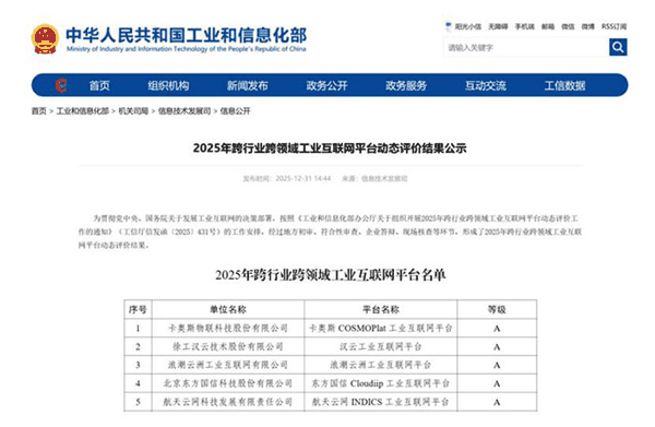 近日,工信部公布2025年跨行业跨领域工业互联网平台动态评价结果,在49家平台企业中,卡奥斯COSMOPlat蝉联第一,连续7年稳居榜首,平台技术创新能力、赋能应用成果及行业影响力获得权威认可。