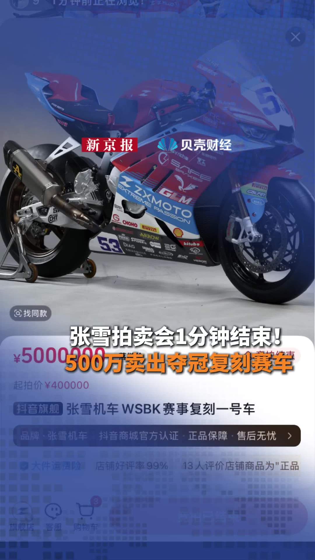 张雪机车WSBK冠军复刻赛车开拍不到一分钟即以500万元封顶价成交,款项全部捐赠嫣然天使基金