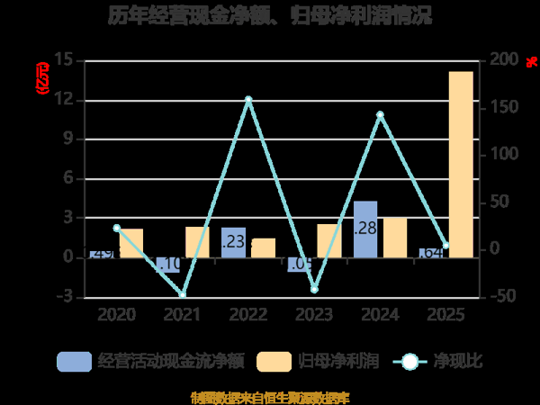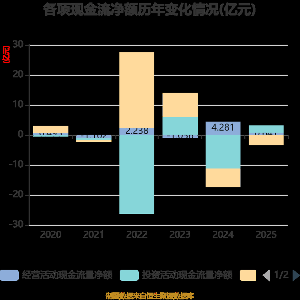 截至2025年,公司经营活动现金流净额为6405.15万元,同比下降85.04%;筹资活动现金流净额-3.4亿元,同比增加2.69亿元;投资活动现金流净额2.46亿元,上年同期为-11.28亿元。
