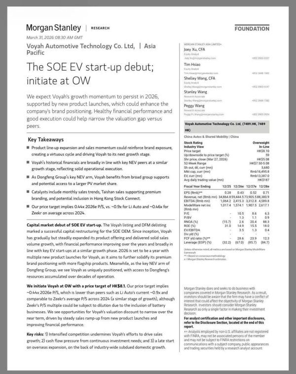 图: 摩根士丹利 覆盖岚图汽车的研报