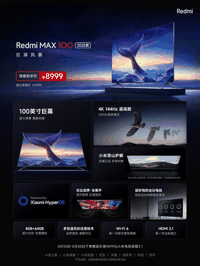 小米推出REDMI电视MAX 2026款:85英寸4599元、100英寸8499元