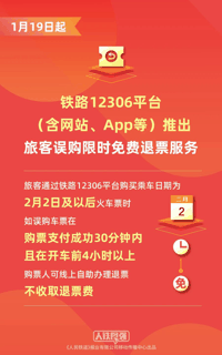 铁路12306新服务1月19日上线:买错火车票将可限时免费退