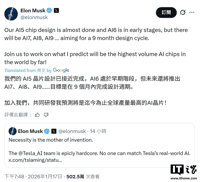 马斯克:特斯拉AI5芯片已接近设计完成,已开始研发下一代型号AI62026年01月18日10:22IT之家IT之家1月18日消息,埃隆·马斯克昨天在X平台表示,特斯拉AI5芯片已接近设计完成,而AI6芯片目前处于早期阶段,后续还将推出AI7、AI8、AI9,目标是在9个月内完成设计周期。