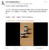 路虎卫士包揽达喀尔拉力赛所有赛段冠军夺冠2026年01月18日11:45快科技快科技1月18日消息,达喀尔拉力赛官方日前发文宣布,1月17日,2026达喀尔拉力赛在延布落下帷幕。