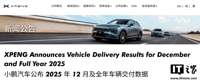 2026-01-01 [小鹏汽车] 小鹏汽车2025年12月交付37508辆同比增长2%,全年增长126%