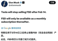 2026-01-14 [特斯拉] 特斯拉将停止销售FSD,将仅以月度订阅形式提供
