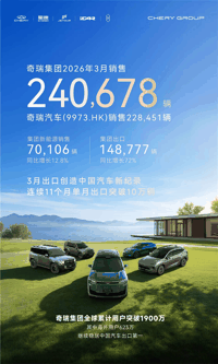 2026-04-01 [奇瑞集团] 奇瑞3月销量24万辆!单月出口近15万辆创中国汽车新纪录