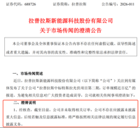 随后,拉普拉斯午间发布澄清公告称,经核查,截至目前,公司并未取得相关订单,公司不存在应披露而未披露的重大信息。