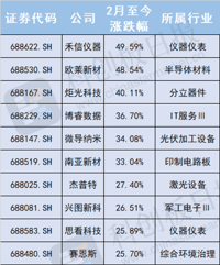 2月至今(2月1日-2月18日),科创板涨幅排名靠前的