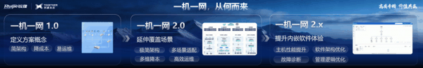 ● 1.0,定义方案概念 : 首次提出一机一网概念,围绕“简架构、降成本、易运维”三大核心主张,实现了方案从0到1的跨越;