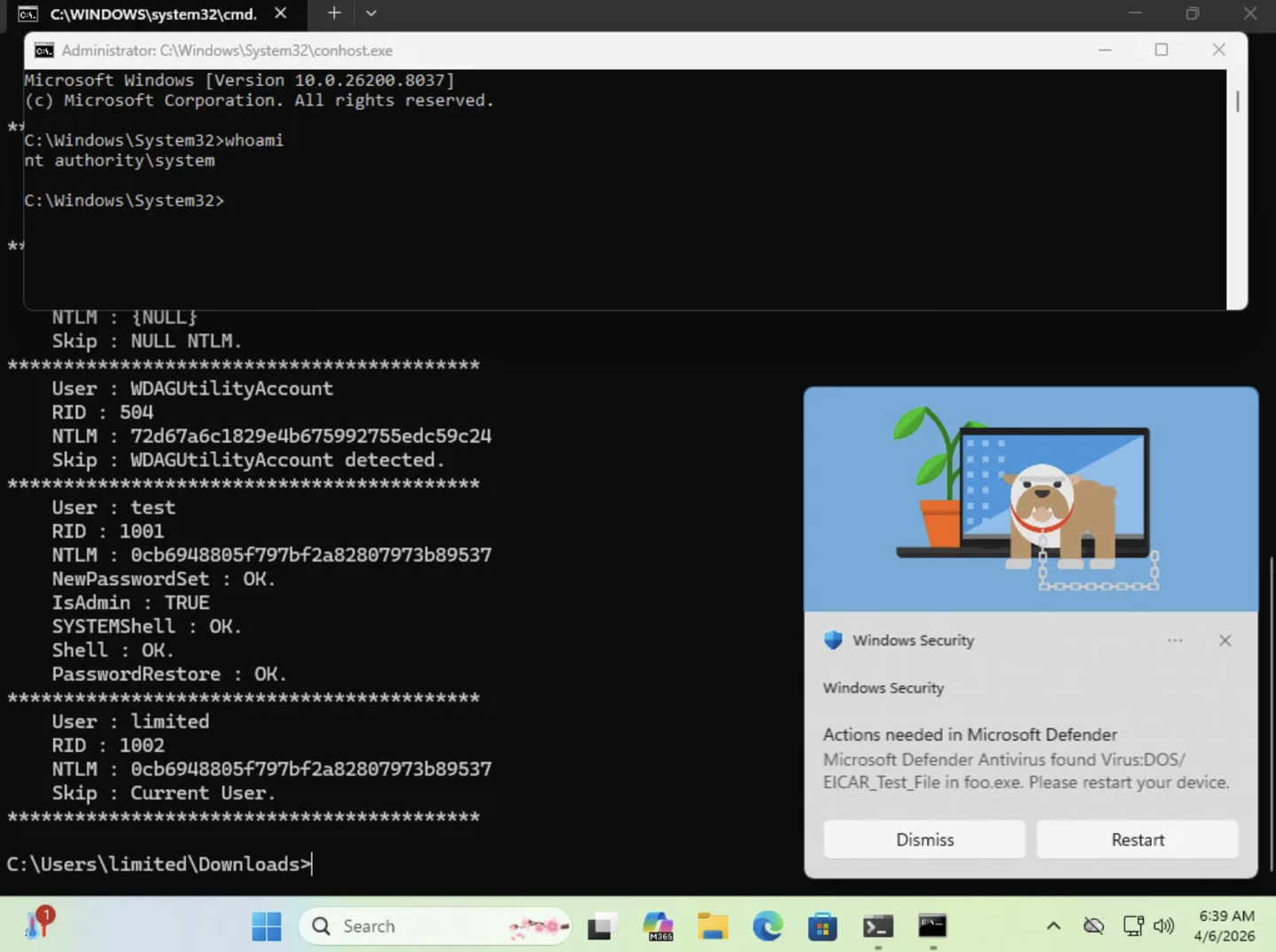从技术角度来看,BlueHammer 主要利用了 TOCTOU(检查时与使用时不一致)竞态条件与路径混淆问题组合方案进行攻击,黑客得手后可访问系统中的 SAM(Security Account Manager)数据库,从而获取本地账户的密码哈希,并进一步获得系统 SYSTEM 权限。