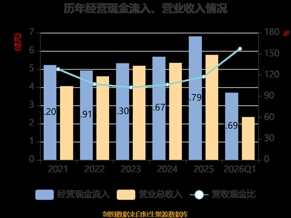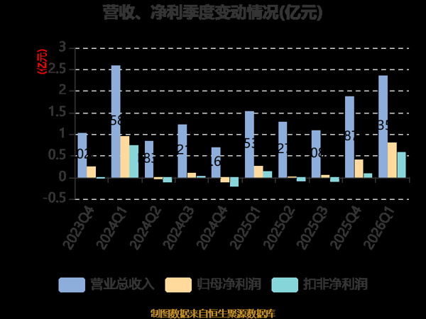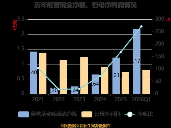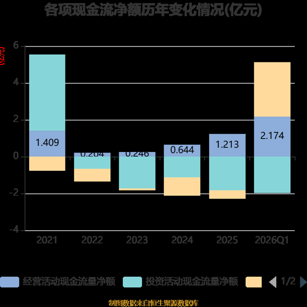 截至2026年一季度末,公司经营活动现金流净额为2.17亿元,同比增长717.14%;筹资活动现金流净额2.95亿元,同比增加2.77亿元;投资活动现金流净额-1.97亿元,上年同期为-9464.66万元。