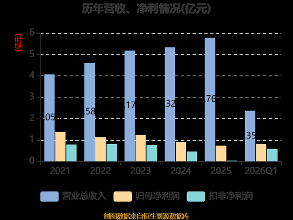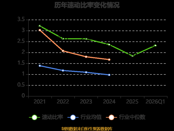 2026年第一季度,公司流动比率为2.96,速动比率为2.32。