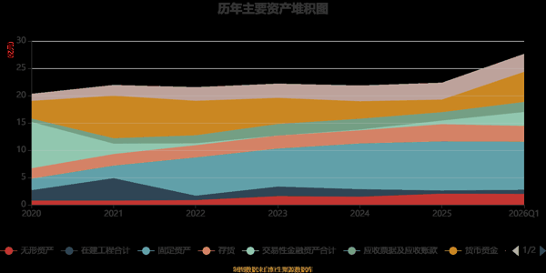 资产重大变化方面,截至2026年一季度末,公司货币资金较上年末增加140.55%,占公司总资产比重上升9.73个百分点;固定资产较上年末减少1.98%,占公司总资产比重下降8.36个百分点;交易性金融资产合计较上年末增加279.03%,占公司总资产比重上升6.21个百分点;存货较上年末减少7.72%,占公司总资产比重下降3.58个百分点。