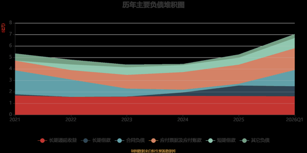 负债重大变化方面,截至2026年一季度末,公司合同负债较上年末增加860.04%,占公司总资产比重上升4.48个百分点;长期递延收益较上年末减少1.47%,占公司总资产比重下降1.49个百分点;长期借款较上年末减少3.9%,占公司总资产比重下降0.91个百分点;应付票据及应付账款较上年末增加13.26%,占公司总资产比重下降0.63个百分点。