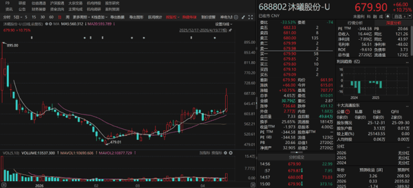 从沐曦股份股价走势看,在上市首日大涨之后,股价持续回落。但从今年2月初以来,股价表现强势,过去两个多月来,涨幅接近40%。
