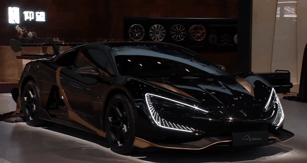 官方称该车名为“破晓时刻”,采用炫酷的黑金外观,配有超大尾翼。