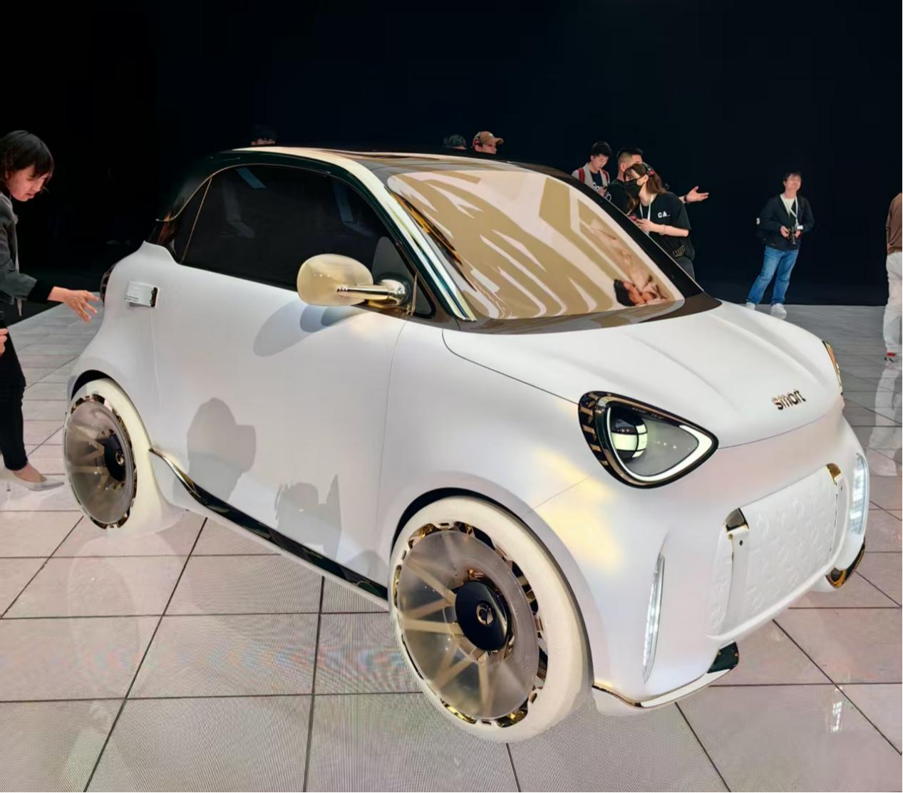 舞台中央,精灵#2概念车宛如一次时空穿越。2792毫米的车长,经典的双座布局,6.95米的最小转弯直径,每一个数字都在唤醒人们对1998年初代smart fortwo的记忆。它并非简单的复刻,而是在全新ECA纯电架构上,对“城市出行本质”的当代回应。哑光白与金色的撞色,四轮四角的灵动姿态,将“功能即时尚”的哲学,从机械时代无缝带入电动时代。这辆车的存在,是smart对忠实拥趸的承诺:那个代表着前卫、个性与城市自由的精灵,从未远去。