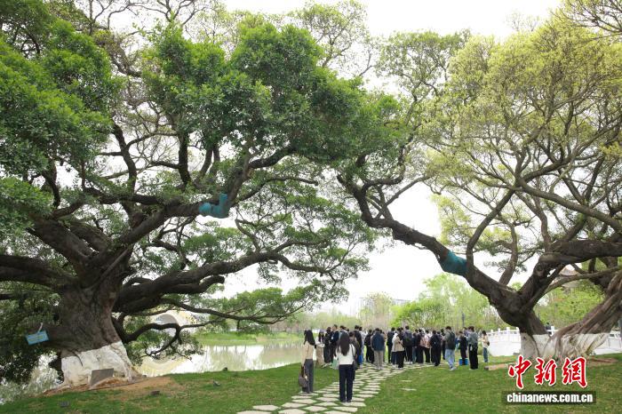 园博园内,原址保留的古榕树吸引民众参观。 孙杨洋 摄