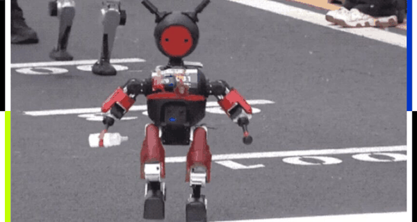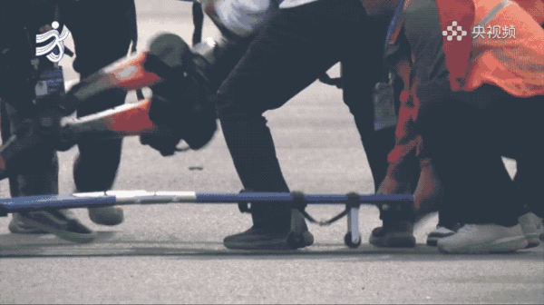 紧急抢救上线,担架小哥都已经冲进赛道了,在工程师的帮助下,它自己又颤颤巍巍地爬起来完成了撞线。于是,第一只冲线的机器人出现了。