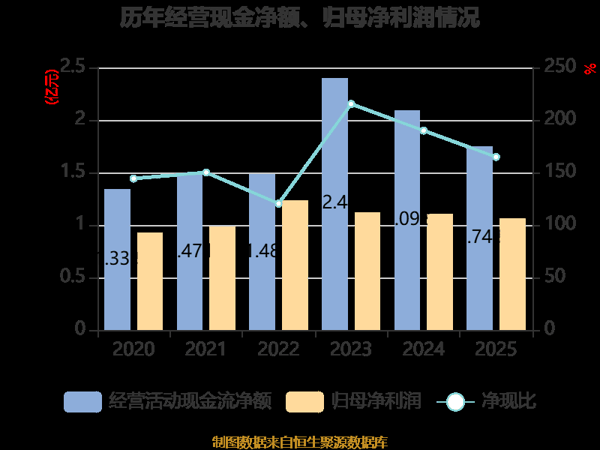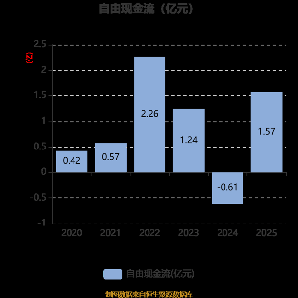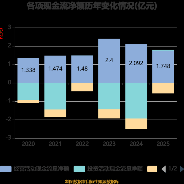 截至2025年,公司经营活动现金流净额为1.75亿元,同比下降16.45%;筹资活动现金流净额-5626.1万元,同比增加56.3万元;投资活动现金流净额414.85万元,上年同期为-1.94亿元。