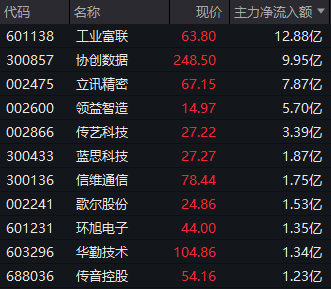 Wind实时监测数据显示,截至午间收盘,消费 电子 板块获得逾55亿元主力资金净流入,这也是该板块连续第7日获得净流入。其中 工业富联 获得逾12亿元净流入, 立讯精密 、 协创数据 等多股也获得超1亿元净流入。
