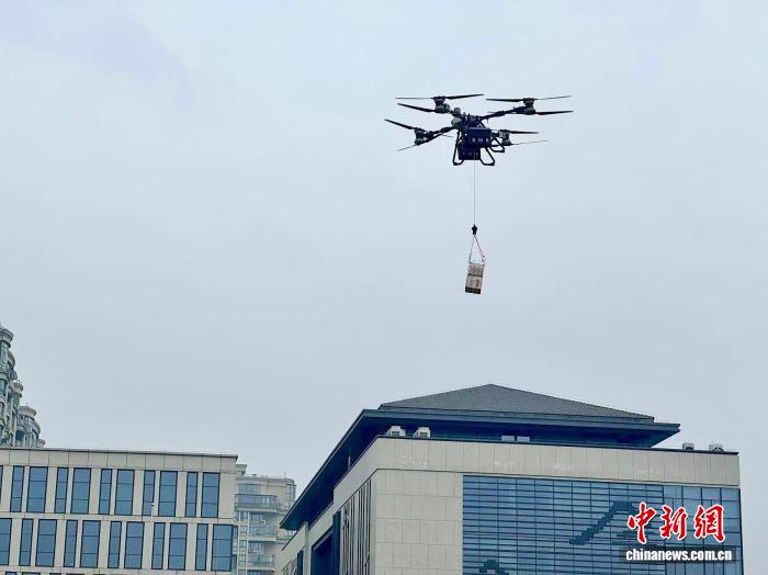 3月17日,浙江绍兴公安无人机模拟运载物资。项菁 摄