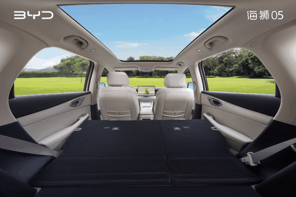 IT之家注意到,车内配备常规的矩形中控屏,中控屏下方及方向盘均配备实体按键,前排中央通道区域还配备了手机无线充电以及双杯架。此外,车辆后排可放倒提供“大床房”形态。