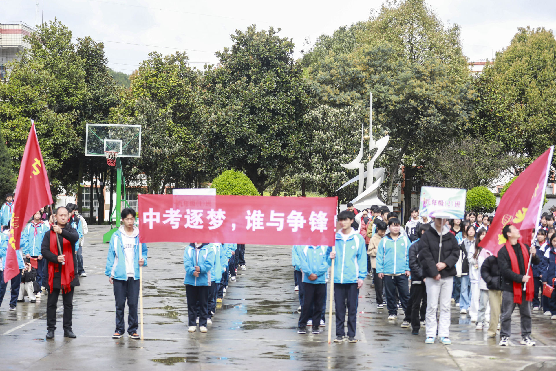 2026年3月24日,贵州黔西,雨朵中学九年级师生宣誓决战中考。(视觉中国|图)