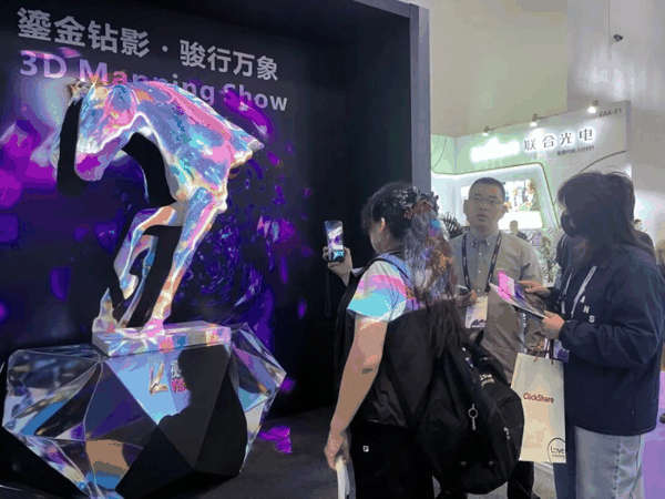 流动的光影在展馆明亮环境下依旧呈现饱和、细腻的质感,马匹鬃毛与纹路光泽栩栩如生,尽显视美乐异形投影硬实力。