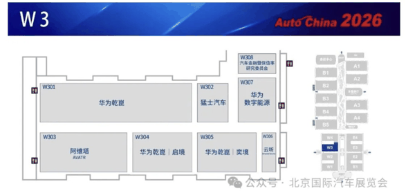 值得注意的是,阿维塔和猛士没有与各自所属母公司集团相邻,而是选择与华为车BU同处于W3场馆。这两个品牌均采用了Huawei Inside(HI)合作模式,靠近华为车BU不仅是强化技术联盟的形象,也是在借助其用户认知和市场关注度,为自身争取更多曝光与转化。