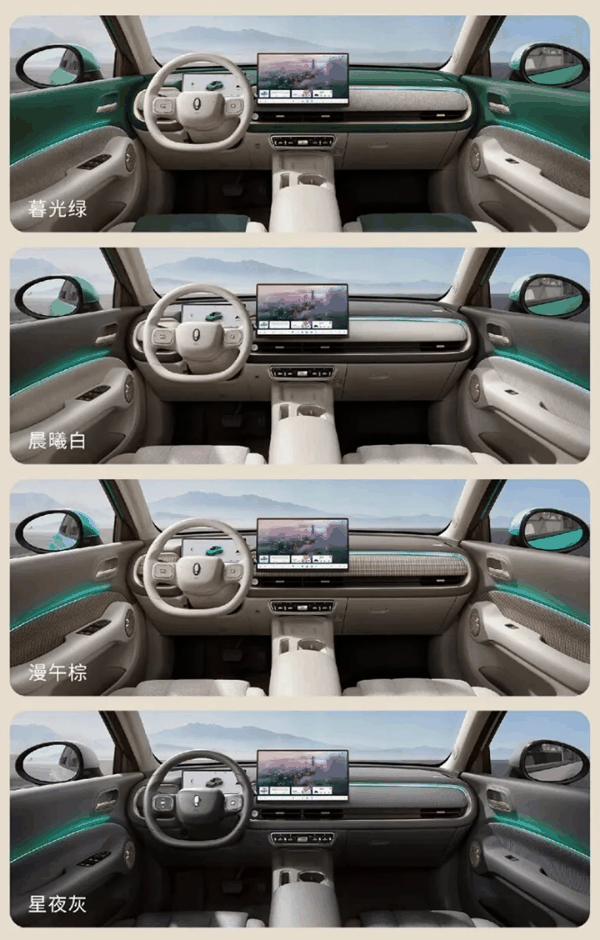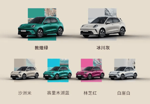 据介绍,新车提供沙洲米、敦煌绿、赛里木湖蓝、冰川灰、林芝红、白崖白等外观配色,内饰提供暮光绿、晨曦白、漫午棕、星夜灰配色。