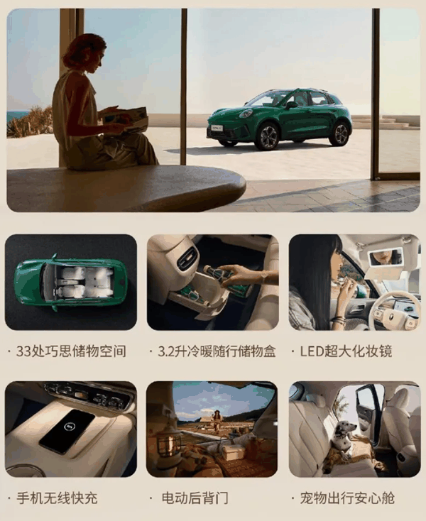 座舱方面,该车提供 1.65 平方米天幕、星河律动氛围灯、Coffee OS 3 系统、3.2 升冷暖随行储物盒、手机无线快充,配备 15.6 英寸悬浮岛中控屏幕 、4nm 芯片、24+128G 内存、毫秒级语音响应。
