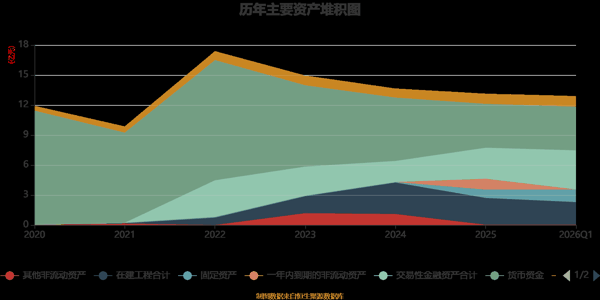 资产重大变化方面,截至2026年一季度末,公司一年内到期的非流动资产较上年末减少100%,占公司总资产比重下降8.33个百分点;交易性金融资产合计较上年末增加25.87%,占公司总资产比重上升6.69个百分点;固定资产较上年末增加52.2%,占公司总资产比重上升3.49个百分点;在建工程合计较上年末减少15.32%,占公司总资产比重下降2.81个百分点。