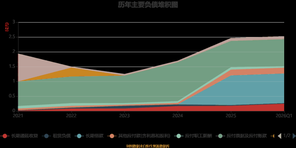 负债重大变化方面,截至2026年一季度末,公司长期递延收益较上年末增加39.89%,占公司总资产比重上升0.57个百分点;应付票据及应付账款较上年末增加3.35%,占公司总资产比重上升0.36个百分点;应付职工薪酬较上年末减少42.33%,占公司总资产比重下降0.27个百分点;长期借款较上年末没有变化,占公司总资产比重上升0.14个百分点。