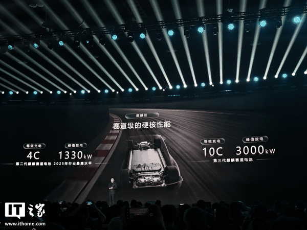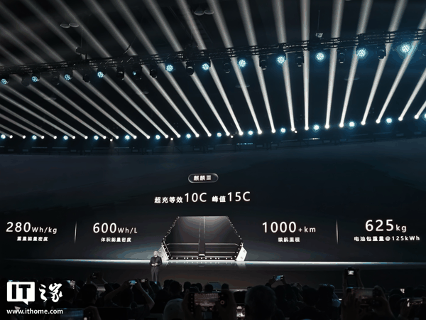 IT之家 4 月 21 日消息,在今天晚间的宁德时代 2026 年超级科技日发布会上,宁德时代正式发布第三代麒麟电池。该电池 超充等效 10C、峰值 15C ,拥有超过 1000 公里的续航里程、600Wh/L 体积能量密度、280Wh/kg 重量能量密度,125kWh 电池包重量仅有 625kg。