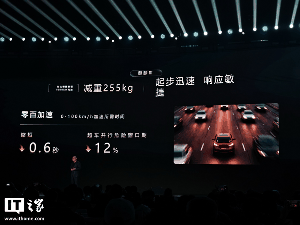 该三元锂电池 相比磷酸铁锂电池减重 255kg ,号称极致轻量化,搭载该电池的车型将拥有更强操控,加速、避险、制动等方面均有更佳表现:零百加速缩短 0.6 秒、超车并行危险窗口期降低 12%。在麋鹿测试场景中,车速可提升 8%、车身侧倾角降低 6.5%、极限避险能力提升 15-25%。百公里制动方面,搭载第三代麒麟电池的车型 刹停距离缩短 1.44m 。