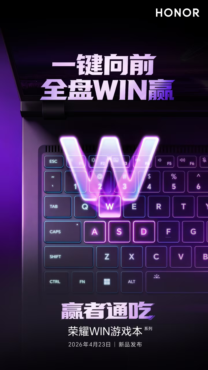 荣耀WIN游戏本开启预约:新增散热黑科技,4月23日发布