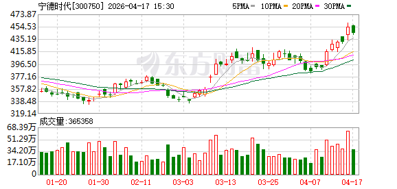 近期宁德时代股价表现强劲,市值持续攀升。截至4月17日收盘,公司A股市值达2.03万亿元,创 历史新高 。choice数据显示,公司股价近一年涨幅达到103.70%。
