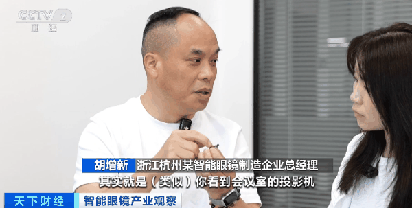 浙江杭州某智能眼镜企业联合创始人向文杰:我们有一个完整的应用商店,很多家庭有 智能家居 ,控制 智能家居 开灯、开电视、开 空调 ,用眼镜直接讲就可以。