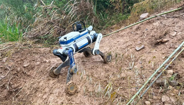 该机器人以云深处科技研发的“山猫M20”轮足机器人为移动平台,集成大模型与车载系统, 搭载双光谱吊舱、5G模块、边缘算力盒等装备,可替代人力完成隐患巡查、险情侦察、人员搜救等核心防汛任务。