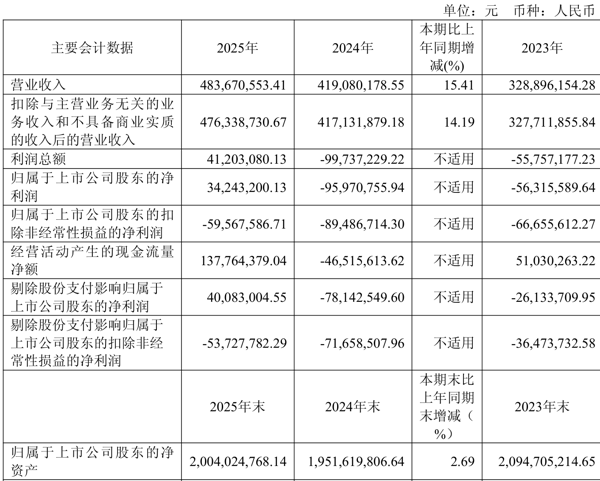 中证智能财讯 概伦电子 (688206)4月16日披露2025年年度报告。2025年,公司实现营业总收入4.84亿元,同比增长15.41%;归母净利润3424.32万元,同比扭亏;扣非净利润亏损5956.76万元,上年同期亏损8948.67万元;经营活动产生的现金流量净额为1.38亿元,上年同期为-4651.56万元;报告期内, 概伦电子 基本每股收益为0.08元,加权平均净资产收益率为1.74%。公司2025年度分配预案为:拟向全体股东每10股派现0.3元(含税)。
