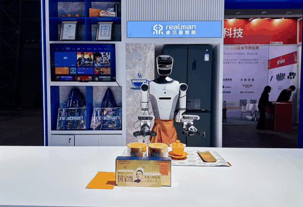 全球化系统级基础设施平台公司睿尔曼展台前,RealBOT轮式人形机器人忙到“一刻不停歇”。在工作时间,TA是“机器人茶艺师”为嘉宾提供泡茶服务,将福鼎白茶的每一道工序精准复刻。在休息时间,TA还要从冰箱里取出冰可乐与嘉宾互动。