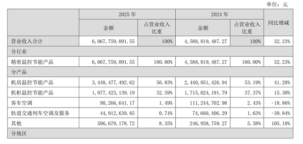 其中,包含液冷业务在内的机房温控节能产品营收达34.48亿元,占比已提升至56.83%,同比增速达41.28%。