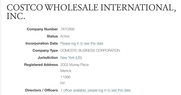 COSTCO WHOLESALE INTERNATIONAL, INC.(纽约州)注册信息