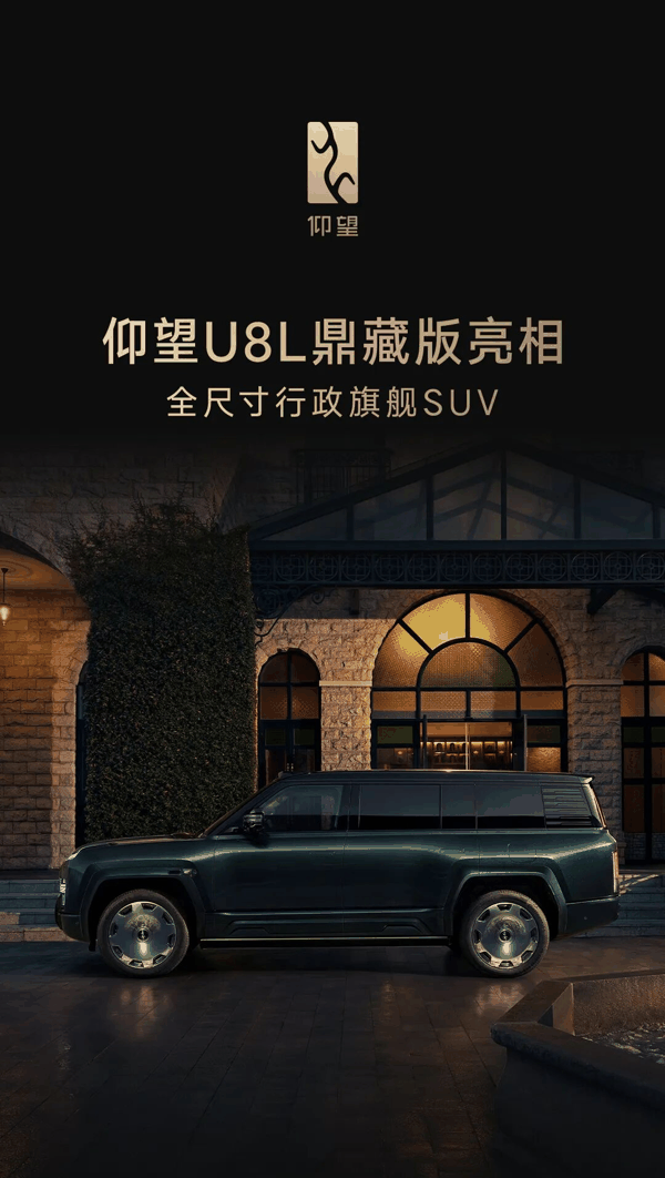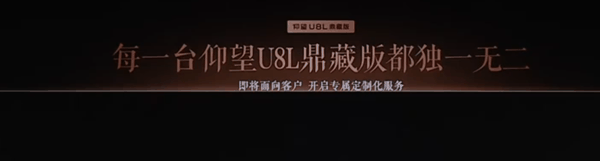 仰望 U8L 鼎藏版采用 四座布局 ,配有“同级最阔双零重力座椅”,即将面向客户开启专属定制化服务。