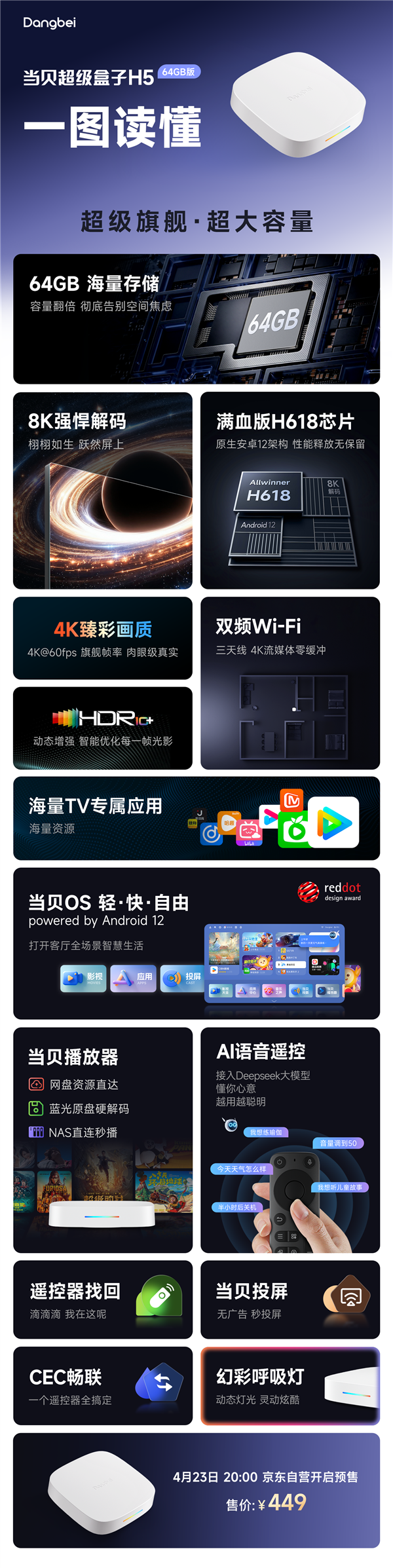 一图看懂:当贝超级盒子H 5 64 GB版发布大存储旗舰盒子回归