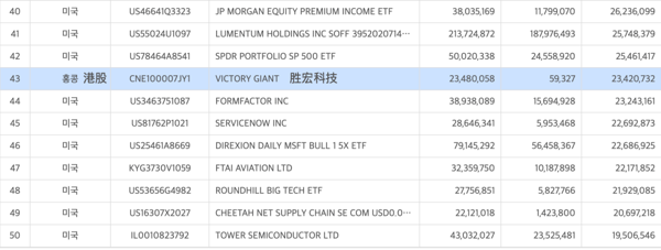 这份榜单常年被 特斯拉 、 英特尔 、SPDR标普500ETF等美股大型科技股和ETF占据。 胜宏科技 4月21日才登陆港交所,韩国投资者便将其买入榜单前列。